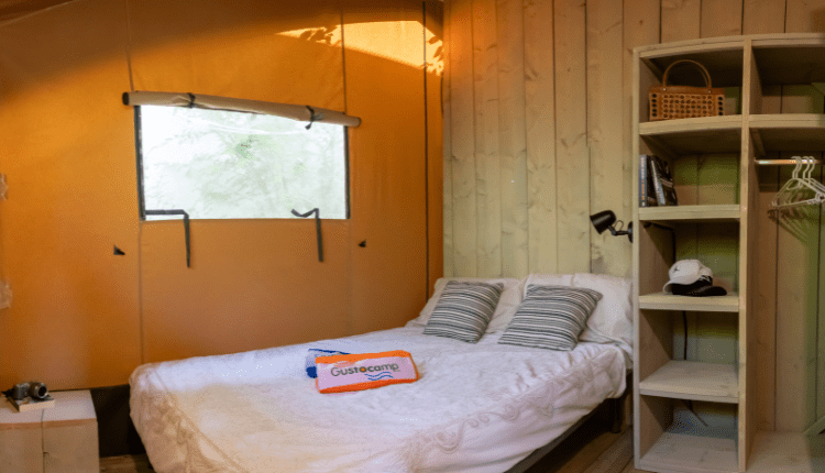 Looking for comfort and adventure? Then the spacious, fully equipped Gusto Safari Tent is just what you are looking for. You will enjoy the real camping feeling, but with extra luxury: a wooden floor, lots of living space, comfortable beds and a practical L-shaped kitchen with a high fridge with freezer compartment and a 4-burner cooker.