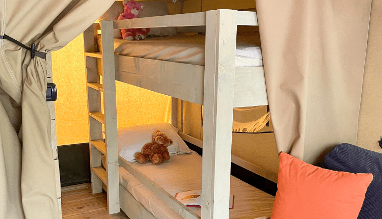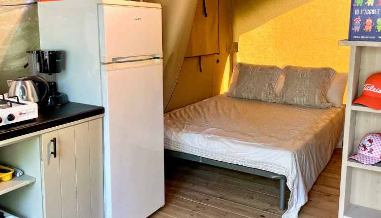 Experience the real camping feeling, but with extra comfort in our fully equipped Safari Tent Gusto. This stylish tent has a wooden floor, high ceiling, comfortable beds and a well-equipped kitchen with large fridge and 4-ring cooker. On the wooden veranda you can enjoy a cup of coffee or a cool drink in peace. With full garden furniture, adjustable chairs and a relaxation bench, relaxing here is a matter of course. Let the holidays begin!