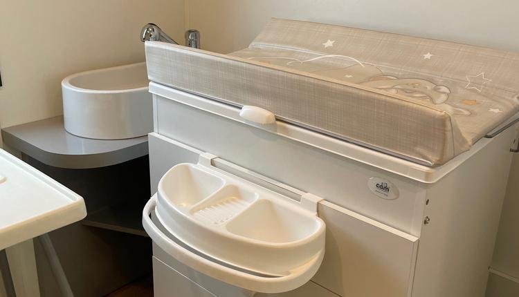 Inside, you will find the special nursery that can be opened up through a sliding door, to amalgamate with the master bedroom, made easy for nursing. The baby's room contains a comfortable cot bed and changing unit with bath. The en-suite facilities ensure a perfect environment for bathing the baby in peace; changing and dressing in comfort. Equipped with a baby monitor, night light, bottle warmer, high chair and buggy. You only have to bring the linen for the cot bed yourself. Plus, many extras, including all the safety features necessary for our little visitors, such as; safety plug covers, corner protection, cupboard/door locks and safety gate. Of course, all Gusto Baby mobile homes include air conditioning and an extra-large wooden deck area, covering the entire length of the mobile.