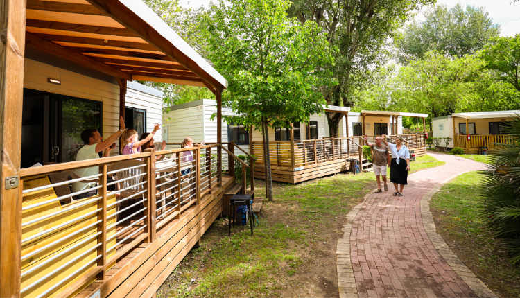 The spacious and comfortably furnished living area forms the central living space of the mobile home. Here you will find a cozy seating area, which can be used as a sofa bed for one additional person if desired. The fully equipped kitchen is ideal for a relaxing camping holiday in Italy and includes an extractor hood, coffee maker, electric kettle, microwave, and a tall refrigerator with freezer compartment. Thanks to the available air conditioning and heating, you can enjoy a pleasant indoor climate throughout the season.Bedrooms